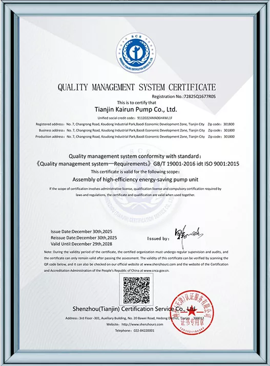 Tianjin Kairun Pump Industry Co., Ltd. - бұл Тяньцзинь қаласында орналасқан сенімді өндіруші және жеткізуші, жоғары өнімді су сорғылары мен сұйықтықты тасымалдау шешімдерін әзірлеуге, өндіруге және сатуға маманданған. 2018 жылы құрылғаннан бері біз дүние жүзіндегі салаларға жоғары сапалы өнімдер мен ерекше қызметтерді жеткізуді міндеттеміз.