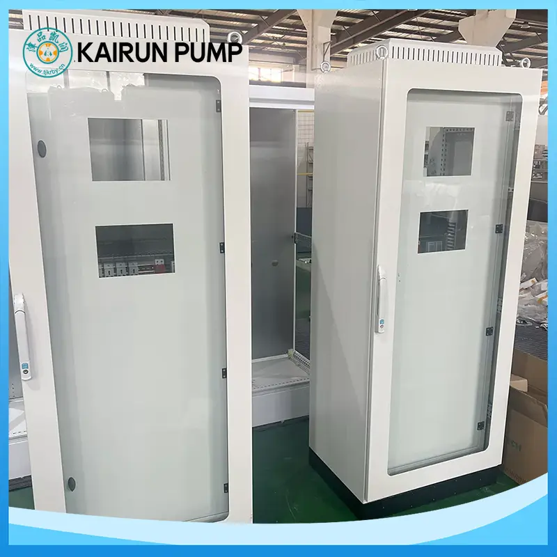Корпус корпусы жоғары сапалы көміртекті болаттан немесе тот баспайтын болаттан жасалған, жоғары вольтты электростатикалық бүркумен өңделген, IP54 қорғау дәрежесіне жетеді. Ол шаң және ылғалға төзімді, ішкі және сыртқы орнатуға жарамды. Ішкі құрамдас бөліктер ұқыпты орналастырылған, ал сымдар берік, ұзақ мерзімді тұрақты жұмысты қамтамасыз етеді. Басқару шкафтарының қуат диапазоны 15-90 кВт, сорғылар, желдеткіштер, компрессорлар және конвейерлер сияқты икемді қолдау көрсететін жабдық, бұл оларды HVAC, өнеркәсіптік өндіріс, ауылшаруашылық суару және өртке қарсы жүйелер үшін өте қолайлы етеді.